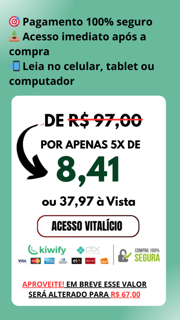 Atenção: Após a confirmação do pagamento, você vai receber no seu e-mail, o link de acesso da plataforma Kwify e para baixar o ebook e os materiais complementares